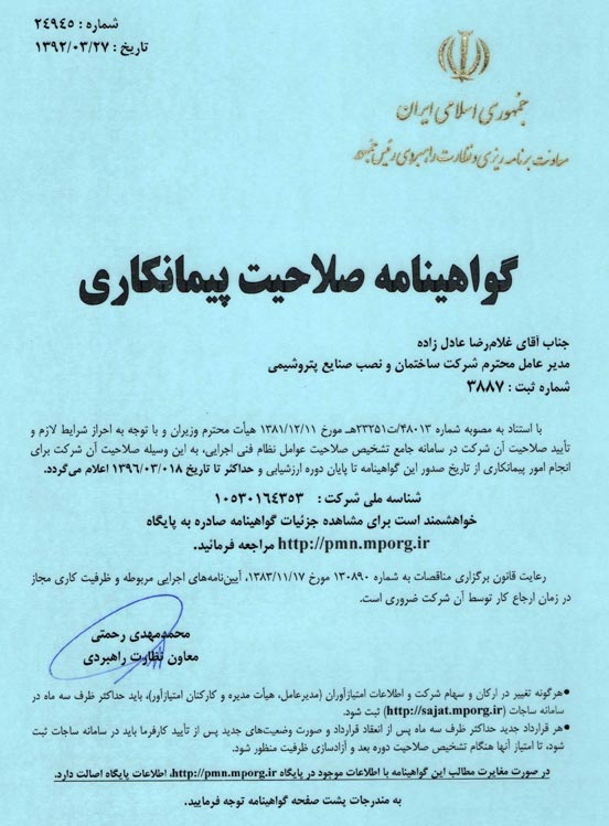 Tehran Office: Mottahari Ave., Kooh-e-Nour St., 7th Street, Ajand Bldg, 6th Floor, No. 62 , Postal Code: 15876-94931